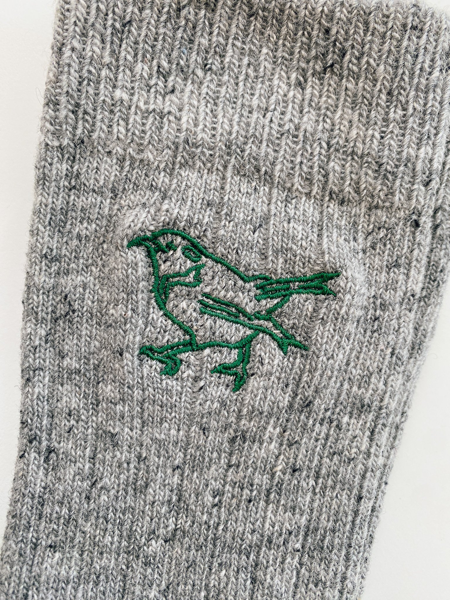 Embroidered in Aotearoa New Zealand on cozy 37% wool socks.